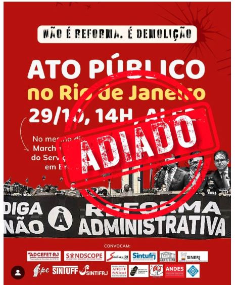 ATENÇÃO!!! SUSPENSO O ATO CONTRA A REFORMA ADMINISTRATIVA QUE SERIA REALIZADO HOJE NO RIO DE JANEIRO